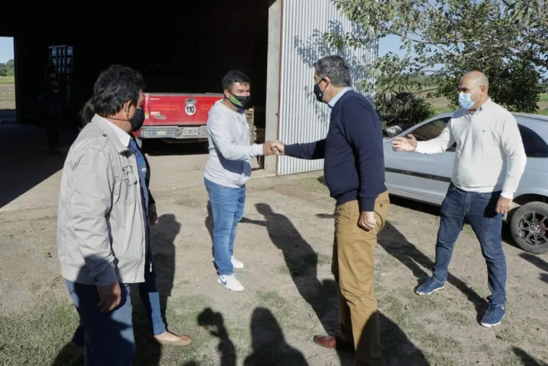 Durante la recorrida, junto al ministro de Planificación, Economía e Infraestructura, Santiago Pérez Pons, y al secretario de Municipios, Rodrigo Ocampo, el gobernador supervisó también obras que se llevan a cabo en la localidad como los 400 metros de veredas.