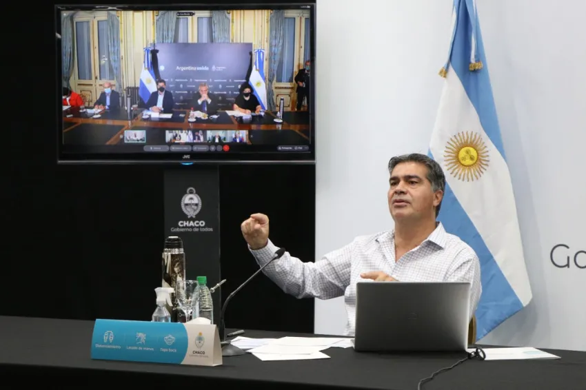 El gobernador Jorge Capitanich, junto a mandatarios provinciales del Norte Grande, mantuvo este martes una teleconferencia con el presidente de la Nación, Alberto Fernández, la ministra de Salud, Carla Vizzotti, y el ministro del Interior, Eduardo de Pedro, donde presentó un balance de las medidas sanitarias que se están realizando en el Chaco, los efectos de la campaña de vacunación y la próxima implementación del Pasaporte Covid.
