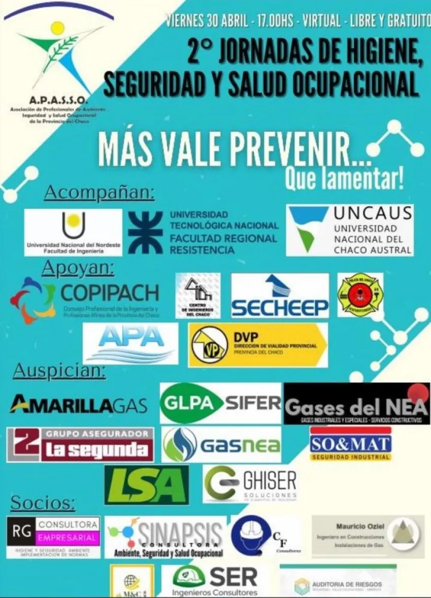 Este viernes 30 de abril, a partir de las 17 horas y hasta las 20 horas, de manera virtual y gratuita, se llevarán a cabo las 2º Jornadas de Higiene, Seguridad y Salud Ocupacional.