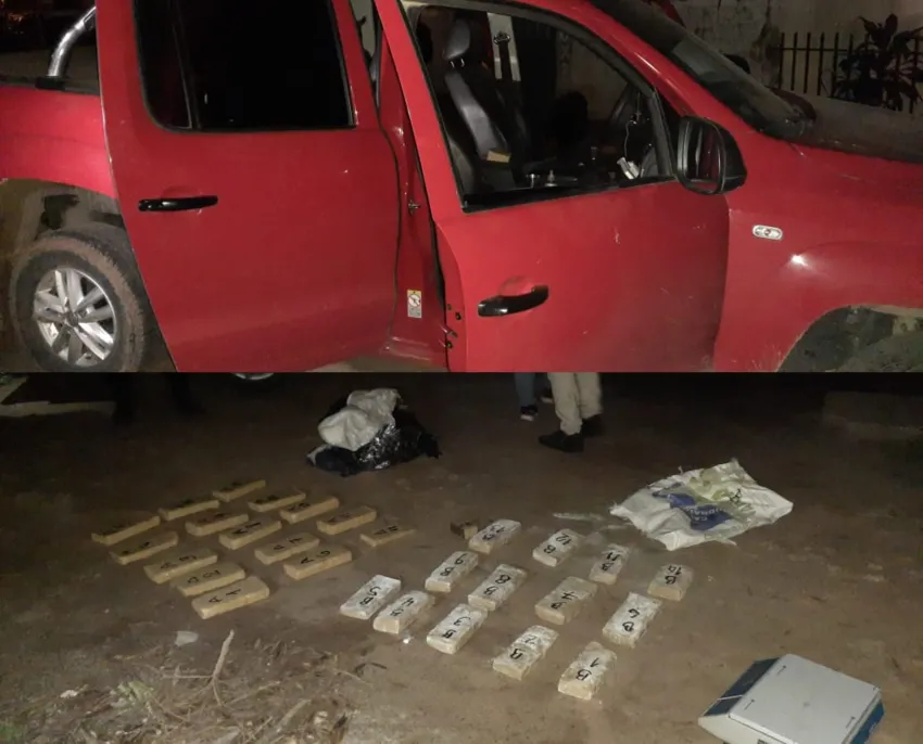 Al momento de inspeccionar el interior de la camioneta la Policía encontró dos bolsas que contenían en total 28 ladrillos de marihuana, con un peso total de 20 kilos.