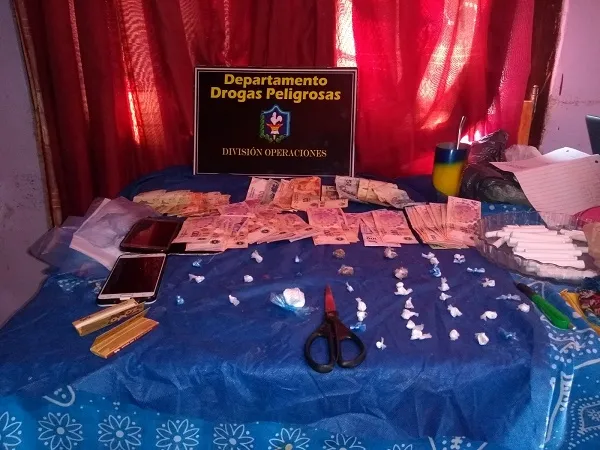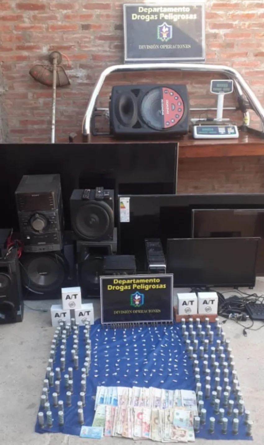 El segundo allanamiento fue por calle Pueyrredón, los agentes incautaron varios elementos que serían importantes en la investigación, entre ellos, 128 envoltorios de polietileno, que contenían 13 gramos de cocaína, una pequeña cantidad de lo que resultó ser marihuana y la suma de $7.332.