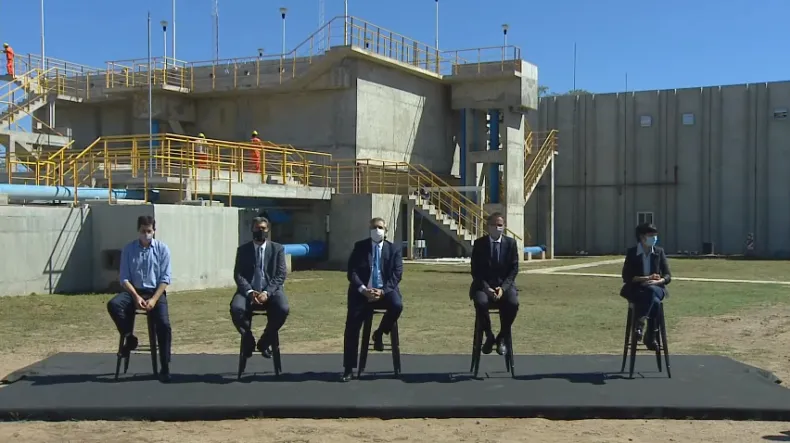 El presidente Alberto Fernández participó de la inauguración del acueducto de El Impenetrable en Misión Nueva Pompeya, donde estuvo acompañado por el gobernador Jorge Capitanich, el ministro de Obras Públicas Gabriel Katopodis, y el ministro del Interior Eduardo De Pedro.