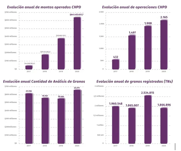 Desde la unidad de AgroNegocios se destaca el importante crecimiento obtenido en cuanto al Laboratorio de Análisis, el cual registró durante el año pasado un +21% de muestras procesadas. A su vez, el área de Registro de Contratos contó con un aumento del 9% en volúmenes operados respecto del año 2019.