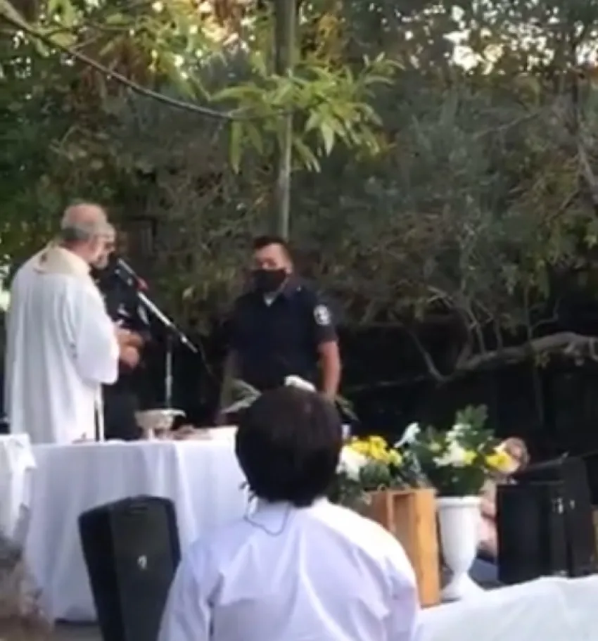 "La ley que sacó Kicillof dice el 30% del lugar donde se pueden reunir, acá entran 400 personas y no llegan a 120 (las presentes)", afirmó el párroco durante una conversación con policías bonaerenses que se acercaron al lugar.