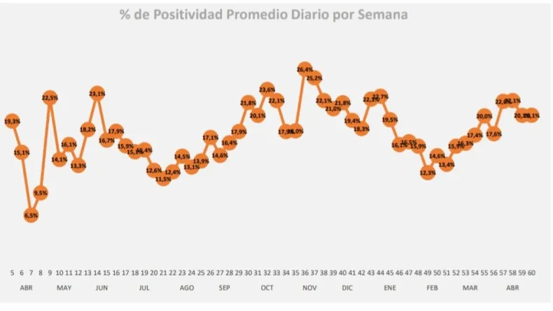 Sobre los indicadores sanitarios positivos, Jorge Capitanich remarcó que hubo una reducción de casos nuevos promedio diario por semana bajando de 223 a 203. Además, la cantidad de testeos se mantuvo en 1.010 con una tasa de positividad de 20,1%.