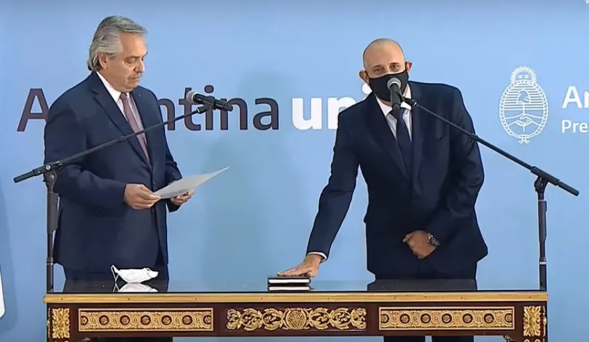 El presidente Alberto Fernández le tomó hoy juramento al designado ministro de Transporte, Alexis Guerrera, quien asumió en reemplazo del fallecido Mario Meoni, en un acto que se desarrolló en el Museo del Bicentenario de Casa Rosada. Antes de tomarle juramento a Guerrera, el jefe de Estado recordó a Meoni, para quien pidió "un fuerte aplauso".