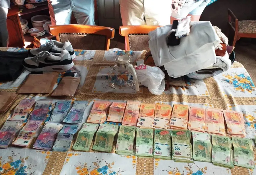 Finalmente hallaron 150 mil pesos en efectivo, prendas de vestir, zapatillas, un corta hierro, una barreta de hierro, 14 celulares, una camioneta Toyota Hilux color blanca, la Fiscalía determinó que estos elementos están ampliamente relacionados con el robo cometido.