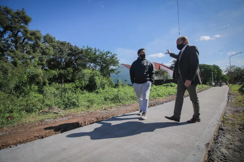 El ministro de Gobierno y Trabajo Juan Manuel Chapo constató el avance de la construcción de veredas en los barrios Miranda Gallino y Villa Rio Negro de Resistencia, que se ejecuta como parte del programa de infraestructura Social Básica. La obra permitirá conectar ambas comunidades con el puente de los inmigrantes.