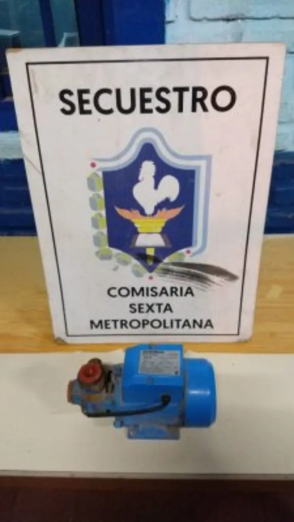 Seguidamente, los efectivos policiales recibieron un aviso radial que a un hombre le sustrajeron una bomba de agua de su domicilio.