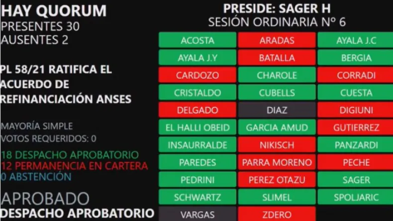 La Cámara de Diputados aprobó el proyecto de ley 58/21 referida a la refinanciación de la deuda que tiene la provincia con la Anses.
