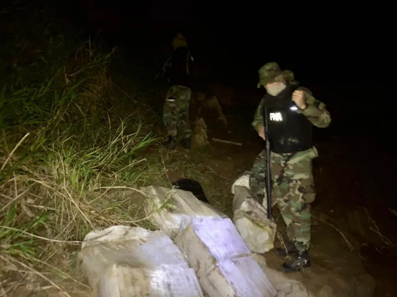 Al llegar a la costa, el personal halló 7 bultos entre las malezas del monte que contenían un total de 316 panes de marihuana. El cargamento incautado está valuado en $22 millones.