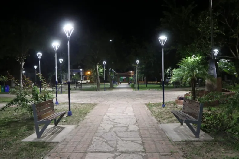 Además, se instalaron tableros principales dentro de la plaza central de la localidad, 72 nuevas unidades de farolas de iluminación de 4 metros de altura, 7 nuevas columnas de iluminación de 7 metros de altura y artefactos modernos tipo LED para las esculturas.