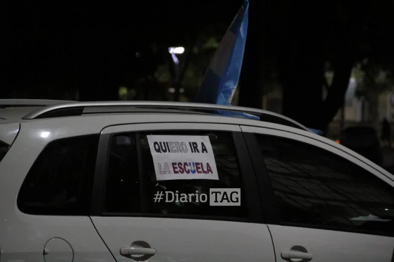 En la convocatoria se pidieron banderas argentinas y carteles, algo que muchos de los que participaron cumplieron. "Quiero ir a la escuela", "Queremos la vuelta de las clases para nuestros hijos", "la escuela no contagia", fueron algunos de los mensajes.