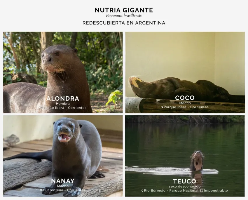 La provincia del Chaco y la Fundación Rewilding Argentina anunciaron este martes que se redescubrió en El Impenetrable una especie que se creía extinta en Argentina: la nutria gigante o lobo gargantilla. El hallazgo significa una gran noticia para el país y el mundo, y refuerza el compromiso por la conservación del bosque chaqueño.Con el registro de este ejemplar, ya son cuatro las nutrias gigantes que habitan Argentina: Coco y Alondra, provenientes de Dinamarca y Hungría respectivamente, se encuentran en un corral de presuelta en el Parque Iberá (Corrientes); Nanay arribó recientemente de Suecia y está transitando la cuarentena en la ciudad de Corrientes antes de ser llevado al Parque Iberá; particularmente la del Bermejo es el único que actualmente vive en completa libertad.