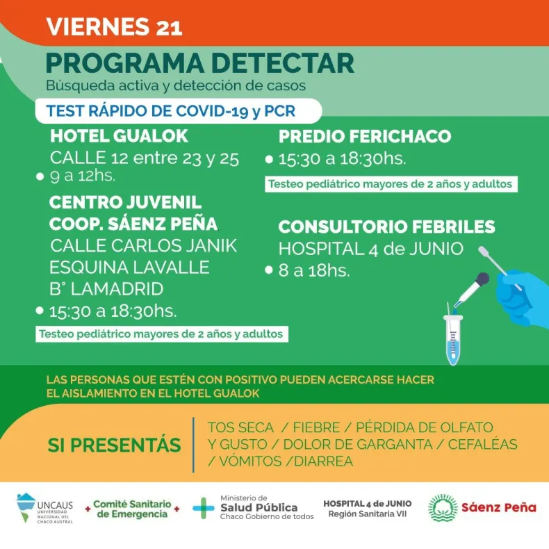 Desde el Ministerio de Salud de la provincia informaron dónde estarán colocadas las postas de vacunación hoy para los testeos rápidos y PCR. Ambas pruebas son fundamentales para abordar territorialmente el avance del Covid-19.