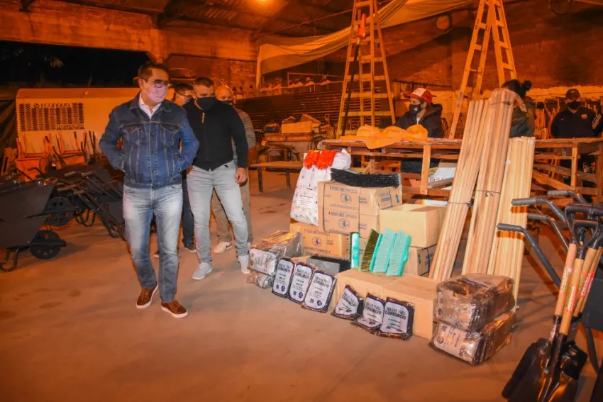 El intendente Gustavo Martínez hizo entrega a los trabajadores del turno noche de la Dirección General de Limpieza 200 escobillones, 60 carretillas, 60 escobas, 40 palas anchas y de punta, 200 pares de guantes y 5.000 bolsas. Esta acción sirve para optimizar el plan de poda para Resistencia.