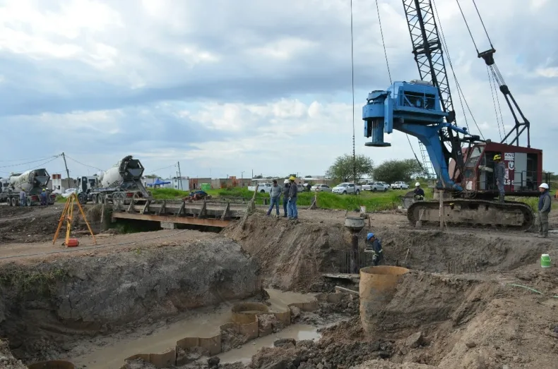 El presidente de la Administración Provincial del Agua (APA) Daniel Pegoraro constató los trabajos de hormigonado para el primer puente del Canal 16 ubicado en el empalme con la Av. Mac Lean. Se trata del primero de los tres puentes que están contemplados a lo largo de los 10 kilómetros del canal, sumado a la ampliación del que ya se encuentra construido.