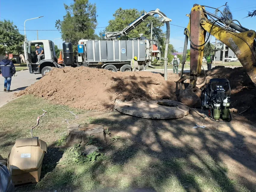Tras días de trabajo se culminó la reparación de la cámara en la esquina de las calles 28 y 11, uno de los colectores más importantes porque recibe los efluentes del barrio Reserva que, a su vez, recibe líquidos de los pozos de los barrios Juan Domingo Perón (ex 713 viviendas) y Santa Mónica.