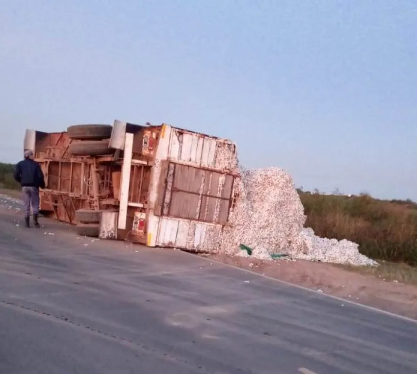 El conductor de 63 años no resultó lesionado y manifestó a los efectivos que volcó cuando estaba por maniobrar hacia la izquierda para dirigirse a la algodonera.