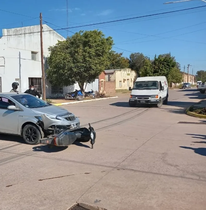 Alrededor de las 12, los efectivos de la comisaría Primera recibieron un llamado al 911, donde vecinos informaron que en intersección de avenida Hipólito Irigoyen y calle Pellegrini, un auto marca Chevrolet había chocado contra una motocicleta 110 cc.