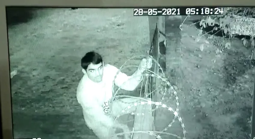 El hecho ocurrió esta madrugada. En las imágenes se ve cómo un hombre que cruzaba el lugar, decidió trepar el muro y sortear los alambres que lo cubrían. Sin embargo, uno de los caños de los que se sujetó cedió y terminó provocando la caída hacia la vereda.