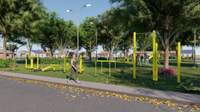 Esta obra, que demandará una inversión de casi $3.200.000, incluirá nuevas columnas y artefactos de iluminación LED, como también moderno mobiliario urbano (cestos de residuos, juegos y ejercitadores de última generación con barras paralelas, caminador doble, fortalecedor de piernas, barras, dorsalera simple, bancos abdominales mixtos.