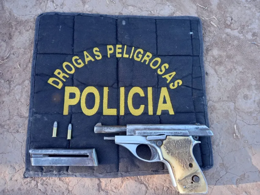 El personal de División Drogas Interior, interceptó a un hombre que circulaba por los caminos de Pinedo y Charata, pero al ser revisado notaron que llevaba un objeto a la altura de su cintura. Divisaron que se trataba de un arma de fuego, marca Bersa calibre 22 con dos cartuchos en el cargador.