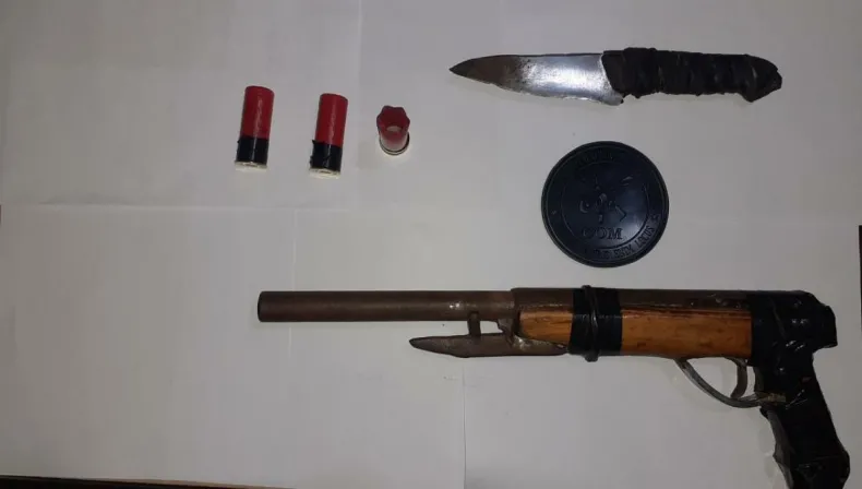 El demorado fue identificado como S.I.S. de 22 años y en poder del mismo se secuestró un arma de fuego tipo pistolón de fabricación casera, dos cartuchos calibre 12, una vaina servida y un arma blanca.