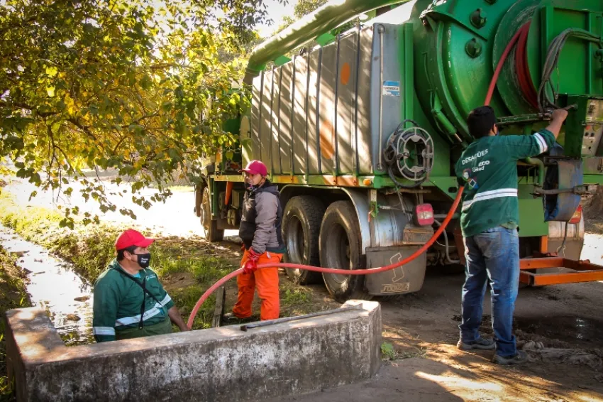 En el barrio Juan de Garay realizaron limpieza de desagües con un camión desobstructor