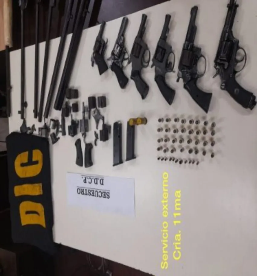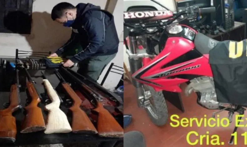 Seguidamente, al ingresar a la casa secuestraron 6 revólveres, 3 rifles, 2 aires comprimido, varios cartuchos de diferentes calibres, cargadores de pistolas y la motocicleta de 250 cilindradas utilizada para cometer el ilícito.