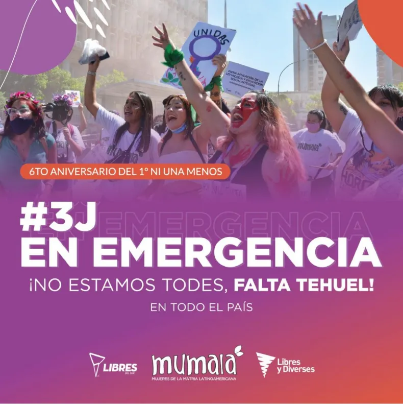 "Este 3 junio la exigencia de la aparición con vida de Tehuel y la necesidad de una Ley Nacional de Cupo Laboral Travesti Trans encabezan una serie de demandas en donde aparece el reconocimiento del trabajo en los comedores, el trabajo de promotores de género en los territorios que no solo atienden las cuestiones relacionadas a la violencia de género sino que también responden a las problemáticas de la crisis sanitaria. Se vuelve crucial la demanda por las vacunas para quienes sostienen los cuidados en los barrios populares", indicaron desde Ni Una Menos Resistencia.