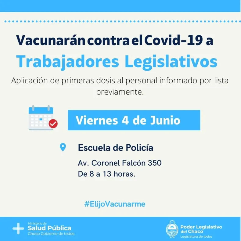El presidente del Poder Legislativo, Hugo Sager, informó que como parte de los nuevos grupos estratégicos anunciados por el Ministerio de Salud Pública del Chaco, agentes del parlamento recibirán este viernes 4 de junio, la primera dosis de la vacuna contra el coronavirus.