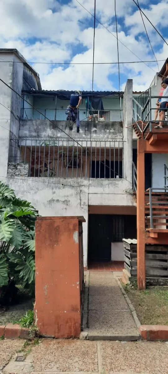 Al llegar analizaron la situación debido a que el domicilio se ubicaba en un segundo piso y el ingreso se dificultaba por las rejas de entrada tanto en el pasillo como en el sector del balcón.