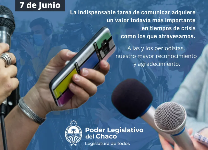Hugo Sager, presidente del Poder Legislativo se refirió a la esencial tarea de comunicar "este día del periodista no debemos dejar pasar la oportunidad de reconocer y valorar el enorme trabajo que realizan diariamente, siempre con vocación y compromiso. Sabemos del esfuerzo que esta profesión implica ante la necesidad de estar permanentemente informados"."La indispensable tarea de comunicar adquiere un valor todavía más importante en tiempos de crisis como los que atravesamos"."Un reconocimiento especial a quienes dignifican su tarea con la conciencia necesaria para dar testimonio de este escenario social complejo, con el compromiso de retratar la realidad".El periodismo con horizonte federal y voces diversas son la máxima expresión de libertad y sana democracia.Finalmente extendió a las y los periodistas del Chaco el mayor reconocimiento y agradecimiento.