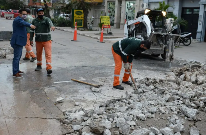En el caso de la calle Salta, entre Alberdi y Necochea, se intervino debido al hundimiento importante en un sector, provocando golpes en el chasis de los vehículos y dificultades en el tránsito en otros puntos.