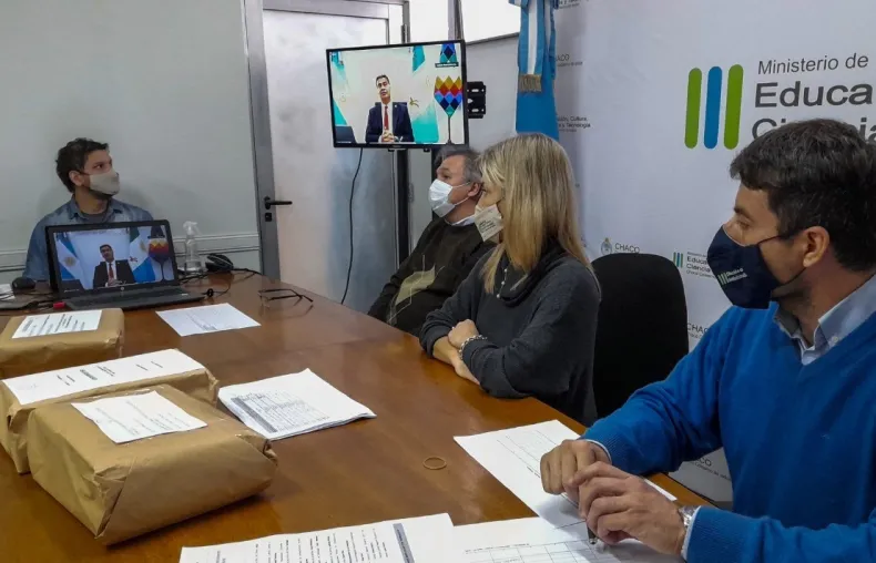 El gobernador de la Provincia, Jorge Capitanich, y la vicegobernadora Analía Rach Quiroga, acompañaron por teleconferencia la apertura de sobres de licitaciones públicas que se llevaron a cabo este lunes, en el salón del Ministerio de Educación para concretar obras de ampliaciones de tres jardines de infantes en Tres Isletas, Machagai y Las Breñas.