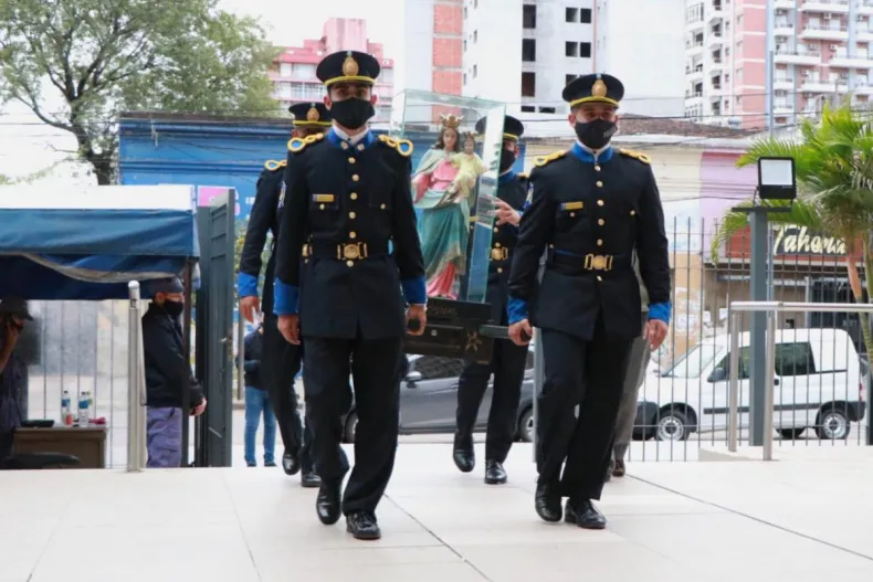 La Virgen fue trasladada por efectivos de la policía chaqueña, con la presencia del diácono Edgardo Colombo y su esposa, Carmen Ramírez. La imagen sagrada permanecerá hasta el miércoles por la mañana, y luego será trasladada hacia la Cámara de Diputados de la provincia.
