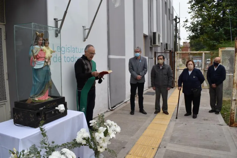 El presidente del Poder Legislativo, Hugo Sager, recibió la imagen de María Auxiliadora y compartió la oración y bendición realizadas por el diácono Edgardo Colombo. La imagen permanecerá en el recinto legislativo hasta las 10 del viernes 11, para continuar su recorrido en la sede de la Municipalidad de Resistencia.