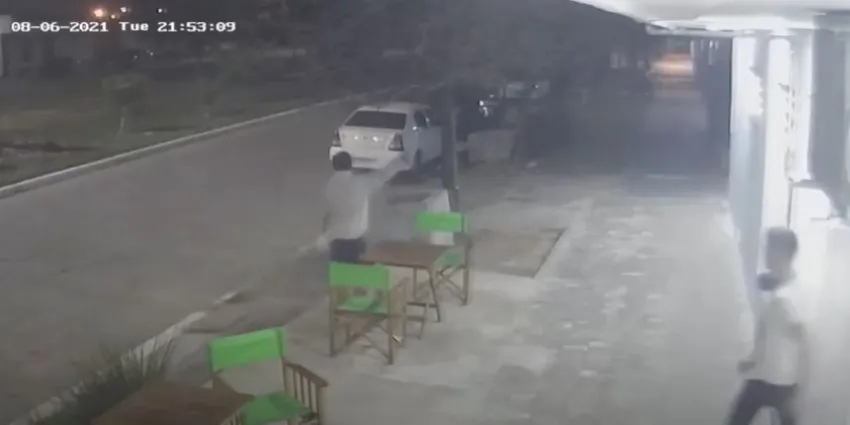 Las cámaras ubicadas sobre avenida Las Heras registró a un hombre sentado en una de las mesas que en un momento se levanta, lleva una silla pero la devuelve a su lugar y se va. Antes de cruzar la calle vuelve e intenta llevarse la mesa, pero uno de los empleados lo impide.