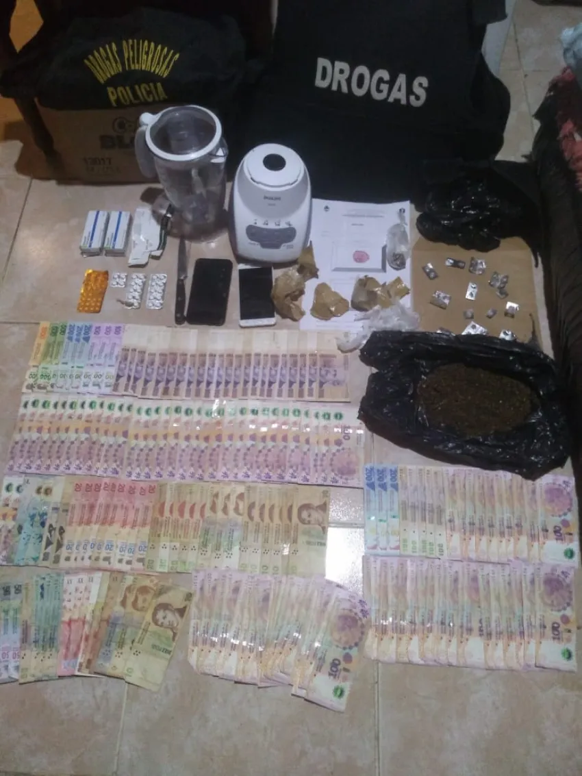 En la primera vivienda del barrio Sector K, ubicado por calle Pública entre calles Chacabuco y Donovan, se procedió a secuestrar 115 gramos de marihuana, dos celulares, 1 motocicleta 110 cc, la suma de $16 mil y 24 comprimidos de clonazepam. Se detuvo a una mujer de 24 años.