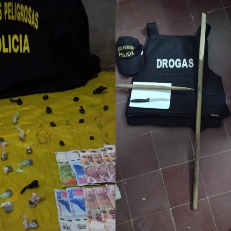 Por último, en una casa ubicada en el pasaje Gato Onza, entre Chacabuco y Donovan se secuestró 9 envoltorios de marihuana, 1 cuchillo y 1 palo astillado, que fue usado para herir a dos policías. El detenido un joven de 21 años de edad. Intervino la Fiscalía de Investigación Penal N° 1 a cargo de la Dra. Gisela Oñuk.