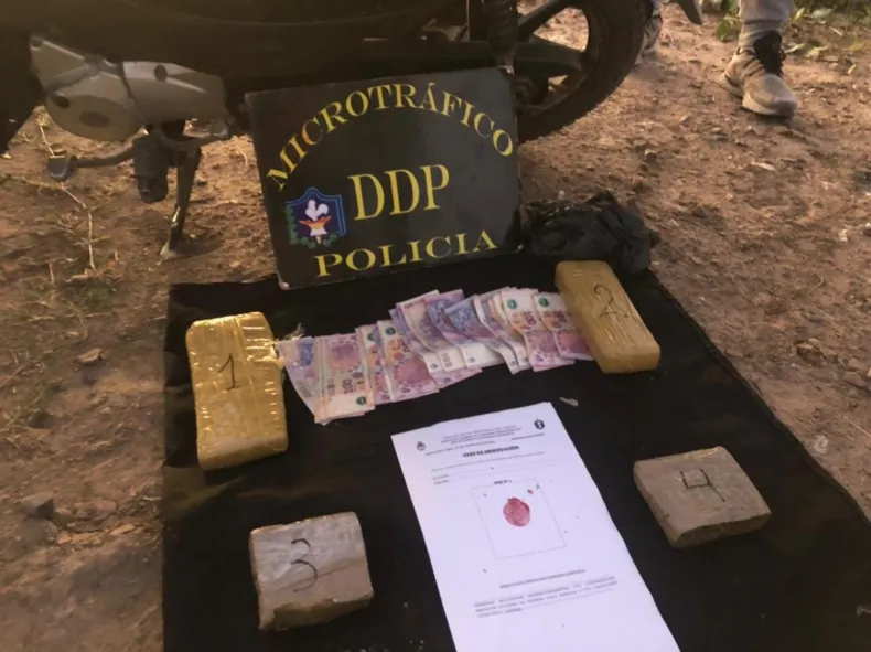 Estas personas carecían de documentación del rodado y al exhibir el baúl de la moto, encontraron una bolsa de residuos color negra que contenía cuatro formatos de forma rectangular, que tras las pruebas de campo se comprobó que eran marihuana con un peso de 1732 gramos.