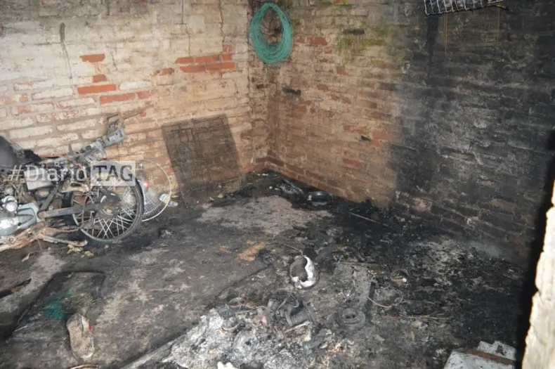 "Era una llama grande, hasta el techo. Con un balde de agua de 20 litros y la ayuda de un joven que vive en frente que trajo otros baldes, logramos apaciguar el fuego" cuenta emocionado mientras señala el depósito que se encuentra al costado de su vivienda donde había una moto vieja y algunas gallinas que murieron calcinadas.