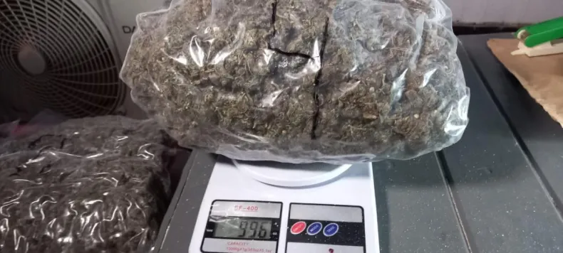Seguidamente, se dio intervención a personal de Consumos Problemáticos, quienes tras realizar la prueba de campo conformaron que se trataba de marihuana con un peso total de 3 kilos y 987 Gramos.