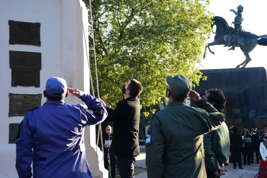 Este domingo, el intendente Bruno Cipolini encabezó la ceremonia de izamiento de la Bandera Nacional en la plaza San Martín, con motivo de la fecha alusiva al símbolo patrio y en conmemoración a su creador, el General Manuel Belgrano.