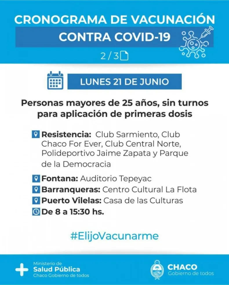 En Resistencia los lugares donde se realizarán los operativos serán: Club Sarmiento, Club Chaco For Ever, Club Central Norte, Polideportivo Jaime Zapata y Parque de la Democracia.