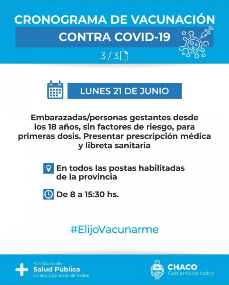 La campaña de vacunación contra el COVID-19 alcanzará desde este lunes 21 de junio a las personas mayores de 25 años para la aplicación de la primera dosis. También a personas embarazadas mayores de 18 años y se aplicará la segunda dosis de la Sputnik V para personas de 73 y 74 años.