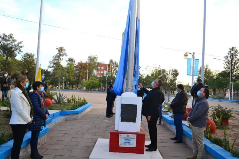En el marco de los festejos por el día de la bandera, el intendente Pío Sander junto a la bicegobernadora Analia Rach Quiroga, la presidenta del Concejo Soledad Rach, el secretario de Gobierno Ismael Pablo Barnes, el concejal Juan Carlos Ortíz, el director de la Regional Educativa ll Adrián Bordón, miembros de las fuerzas de seguridad y miembros del gabinete, participaron del izamiento del pabellón nacional.