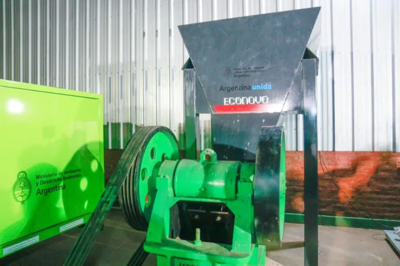 La entrega consistió en: una trituradora de vidrio, una guillotina de neumáticos, una chipeadora de ramas, una balanza de piso de 1500 kilogramos, una peleteadora de plástico, una prensa enfardadora doble cajón vertical, una pala frontal, punto verde móvil de arrastre y 10 contendedores de clasificación.