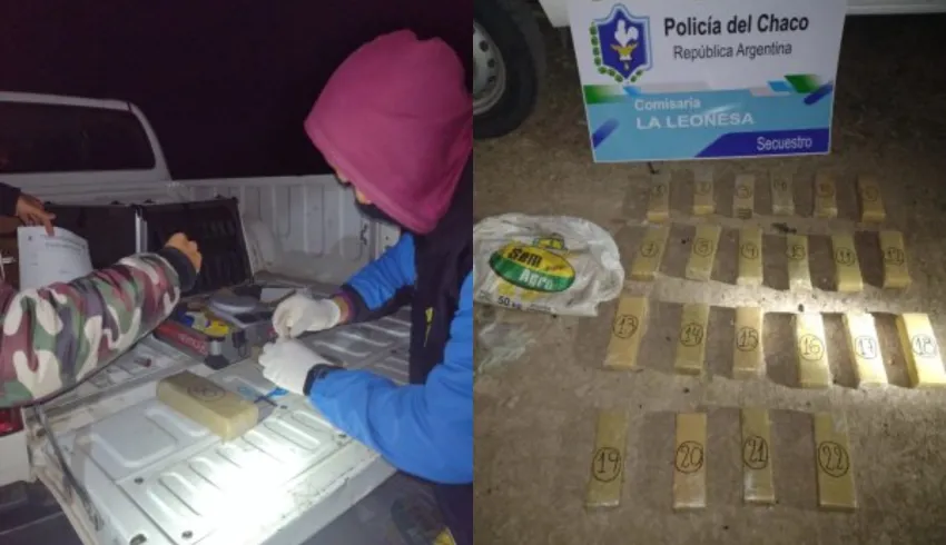 Esta madrugada, en el barrio El Amanecer de La Leonesa, la División Operaciones Drogas junto a la Comisaria local montaron un operativo de vigilancia por una aparente comercialización de drogas. Fue así que en la calle Chile de ese barrio vieron estacionado un vehículo color oscuro, al mismo se acercaron dos sujetos a pie, con una bolsa arpillera.
